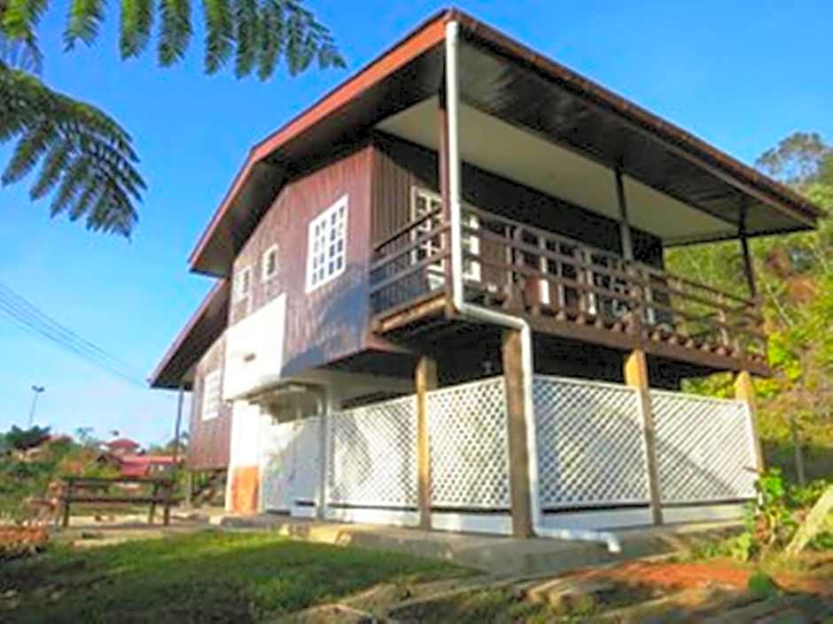 This bungalow comes with a private balcony overlooking the mountain. It also has an outdoor seating area and a kitchenette. A shower is provided in the bathroom.